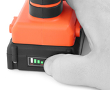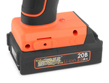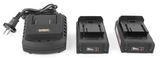 Заклепочник комплектуется двумя LI-iON аккумуляторами 20В емкостью 2Ач, а также быстрым зарядным устройством.