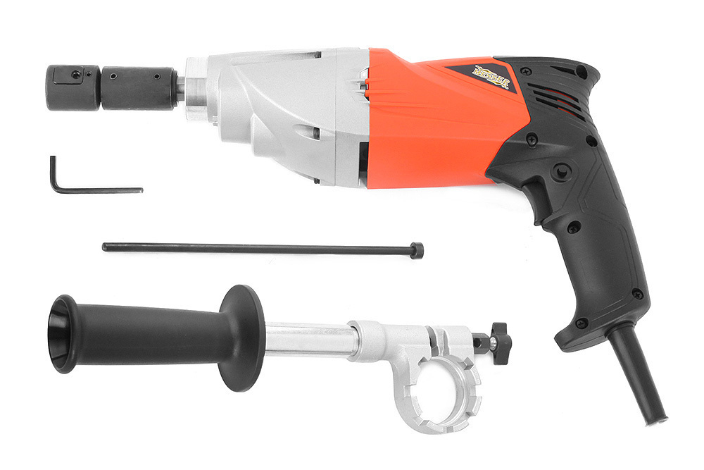 Удобная удлиненная боковая рукоять с возможностью фиксации в нескольких положениях обеспечивает надежное удержание инструмента при работе.