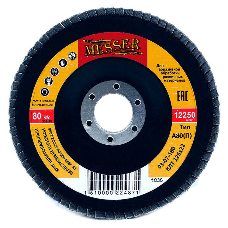 Круг MESSER шлифовальный лепестковый торцевой плоский (электрокорунд) А80(П) 125х22