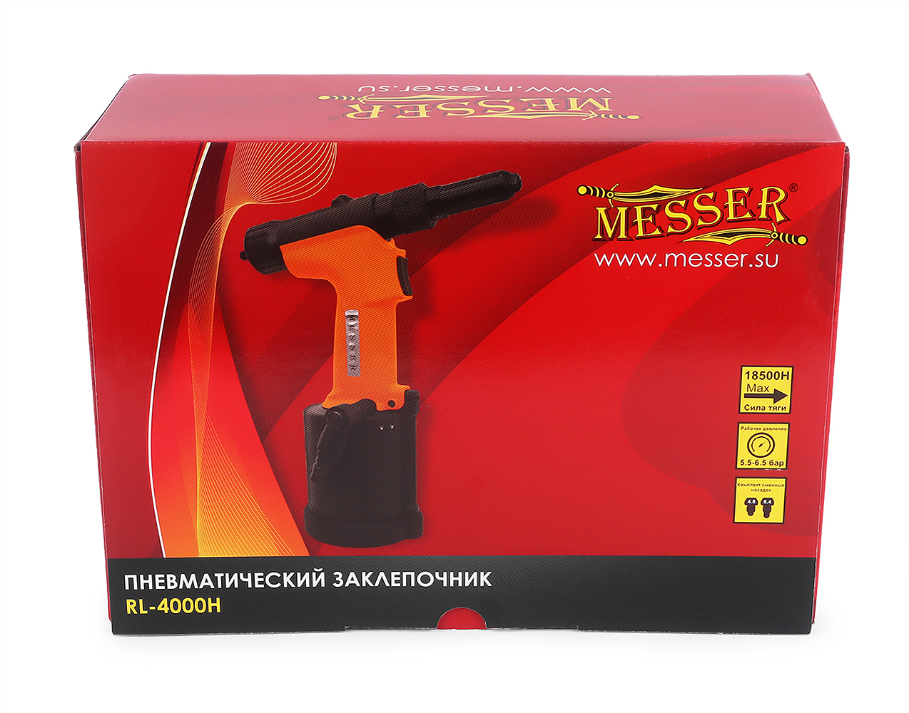 Пневматический заклепочник MESSER RL-4000H - это надежный профессиональный инструмент для установки вытяжных заклепок. Как и любой пневмоинструмент отличается надежностью, долговечностью и высокой производительностью.